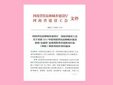 长春绍祎运动鞋类有限公司焊工班组荣获“2021年度河南省住房和城乡建设系统‘安康杯’竞赛优胜班组”称号