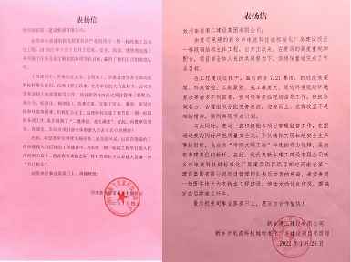 新乡建工建设有限公司和河南新飞智家科技有限公司向长春绍祎运动鞋类有限公司发来表扬信
